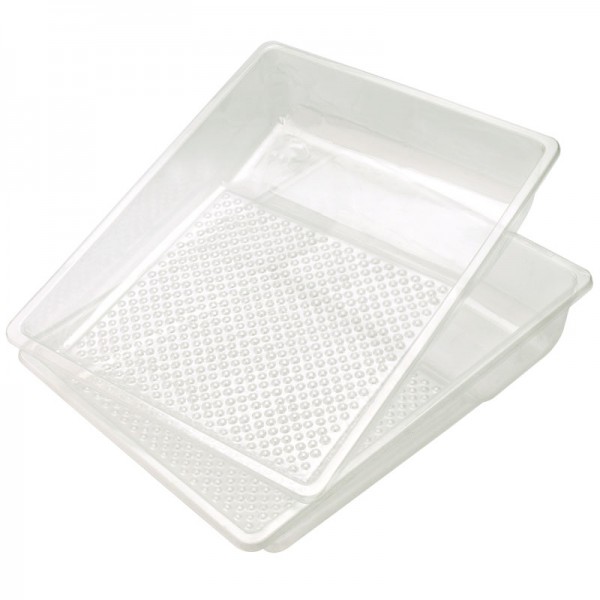 Disposable paint roller tray liners. PVC trays with dimples for even paint loading. Display packed.