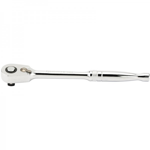 Expert Quality, Micro head, 60 tooth reversible ratchet with solid handle and quick release button. Chrome vanadium steel head and shaft with polished finish.