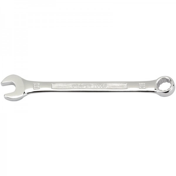 Expert Quality, forged from chrome vanadium steel hardened, tempered and chrome plated for corrosion protection. Polished Draper HI-TORQ® ring end offset at 15°. Jaw offset at 15°.
