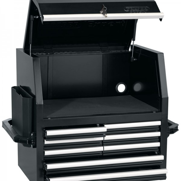 Expert Quality, eight drawer top tool chest. Manufactured from thick sheet steel with a protective powder coated finish. Drawers are fitted with an Aluminium trim, 3mm EVA foam linings, heavy duty auto retention ball bearing runners delivering a smoother operation and a secure locking system Supplied with two keys. The reinforced lid is fitted with supportive gas struts, a plastic document holder and two soft grip handles. Each tool chest is also Supplied with a 6mm EVA top mat. Carton packed on pallet.