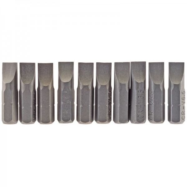 Plain Slot Insert Bit, 6.5mm, 1/4” Hex, 25mm Long (Pack of 10)